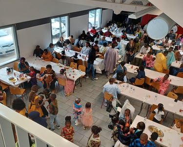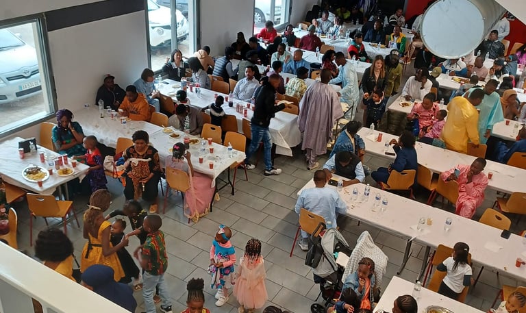 Un moment de partage et de solidarité où la communauté se réunit pour célébrer, prier et partager un repas festif dans la convivialité.